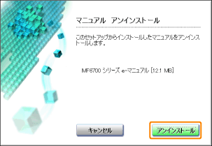 e-マニュアルを削除して、インストール前の状態に戻すことをアンインストールといいます。e-マニュアルをアンインストールするときは、次の手順で行います。