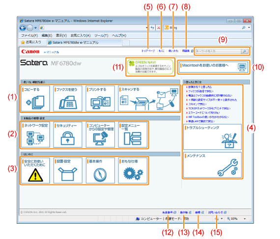 本製品を使用するために知っておいてほしい情報が記載されています。 用紙/原稿のセット方法やスリープモードの設定方法など、本製品の基本操作/基本機能も記載されています。