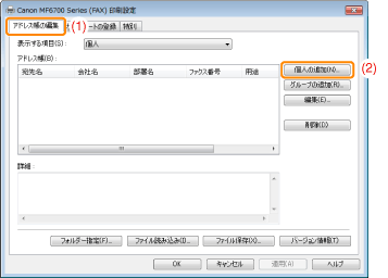 [アドレス帳の編集]ページの表示方法については、「あらかじめファクス送信の設定をする(PCファクス)」を参照してください。