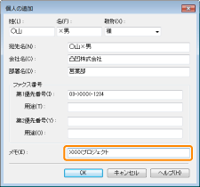 すでに登録された個人のアドレスも編集できます。詳しくは、ファクスドライバー画面の右下の[ヘルプ]をクリックして、ヘルプを参照してください。