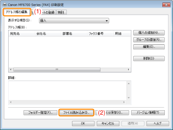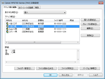 [アドレス帳の編集]ページの表示方法については、「あらかじめファクス送信の設定をする(PCファクス)」を参照してください。