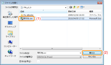 読み込み可能なファイルは、CSV形式のファイル、あるいはCanon Address Bookファイル(*.abk)です。