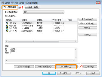 [アドレス帳の編集]ページの表示方法については、「あらかじめファクス送信の設定をする(PCファクス)」を参照してください。