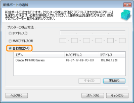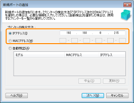 本製品のIPアドレスまたはMACアドレスを入力してください。