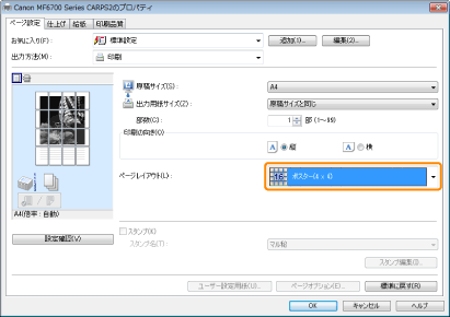 プリンタードライバー画面の表示方法については、「プリントする」または「あらかじめプリントの設定をする」を参照してください。