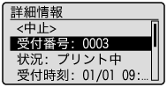 ]で確認または中止するジョブを選択して、[OK]を押します。
