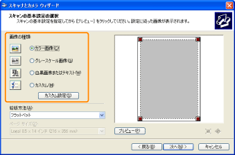 WIAドライバー画面が表示されたら、以下の手順にしたがってください。WIAドライバーの表示方法については、以下を参照してください。