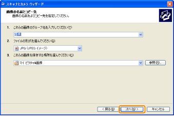 詳しくは「[スキャナとカメラ]画面から読み込む(Windows XPのみ)」の手順