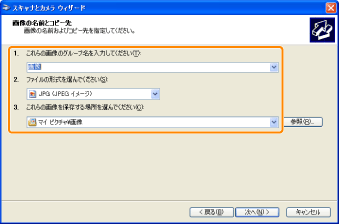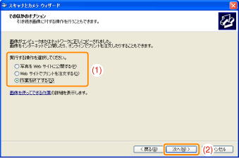 [スキャナとカメラ ウィザード]の指示にしたがって設定します。
