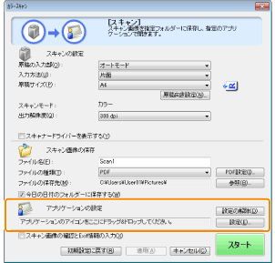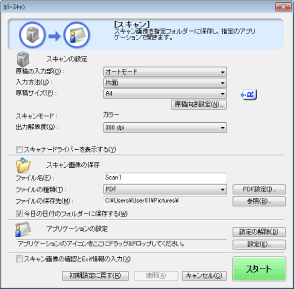 [PDF]で読み込んだ場合読み込んだ画像の確認と保存先の指定のみができます。