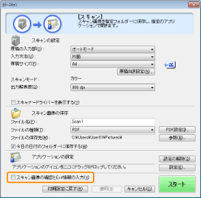 [スキャン画像の確認とExif情報の入力]([PDF]では、[スキャン画像を確認する])にチェックマークを付けます。