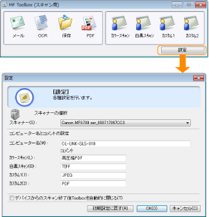 スキャンモードを選択します。選択できるスキャンモードは、クリックしたMF Toolboxのボタンによって異なります。
