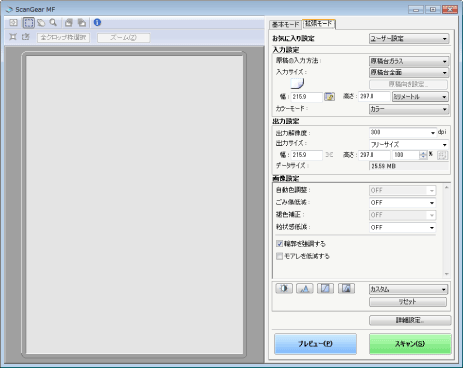 ScanGear MFを起動すると、自動的にプレビューを開始します。 [保存されたプレビューイメージを表示する]
