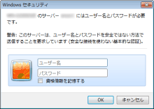 認証画面が表示された場合は、ユーザー名とパスワードを入力します。