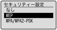 ][ ]で<WEPキー選択>を選択して、[OK]を押します。 |