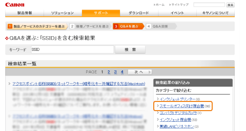 「検索結果の絞込み」の”スモールオフィス向け複合機” をクリックします。