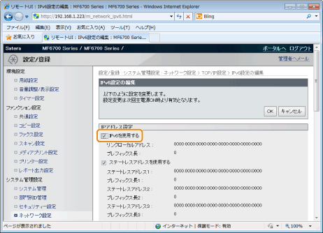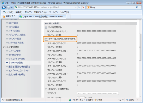 IPアドレスの設定を始める前に、「お読みください(IPアドレスの設定(IPv6))」をご覧ください。