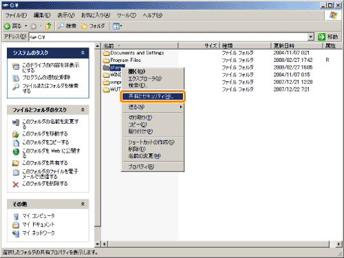 共有フォルダーは、C ドライブの直下など、わかりやすい場所に作成しておくことをおすすめします。