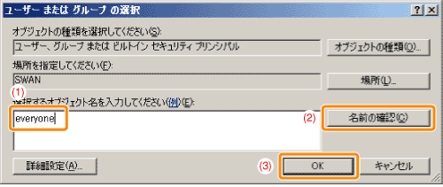 [グループ名またはユーザー名]からアクセスを許可するユーザーを選択します。
