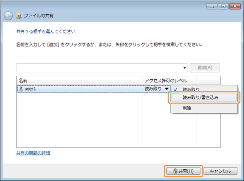 ]をクリックし、共有したいユーザーを選択して、[追加]をクリックします。