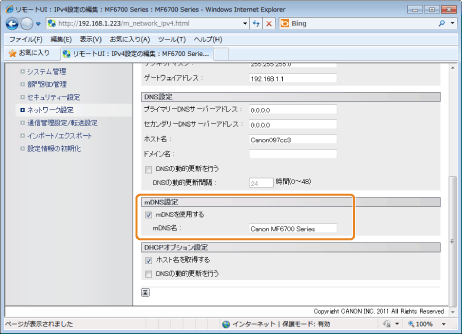 mDNS設定を使用するときにチェックマークを付けます。