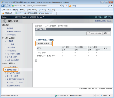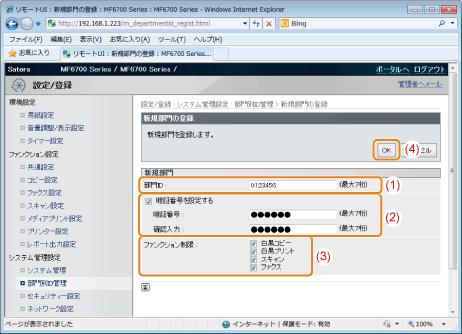 ![]() その機能に制限をかけていない部門は、<はい>を選択後に、部門IDと暗証番号を入力すると本製品が使えるようになります。