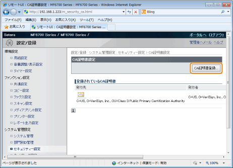 [鍵と証明書の登録]または[CA証明書登録]をクリックします。
