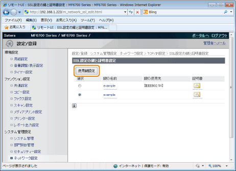 ]で<セキュリティー設定>を選択して、[OK]を押します。