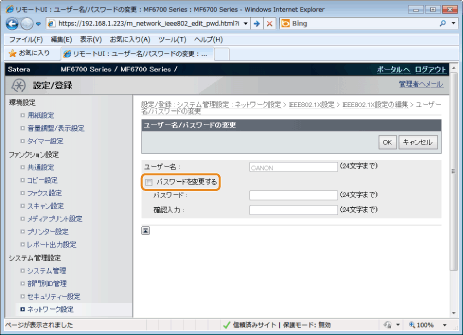[パスワードを変更する]にチェックを付けます。