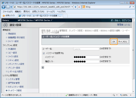 [ネットワーク設定]→[IEEE802.1X設定]をクリックします。