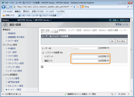 [ユーザー名/パスワード変更]をクリックします。