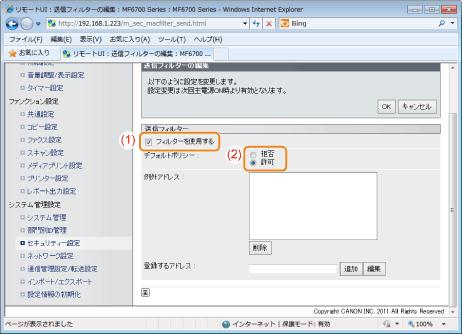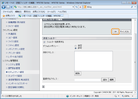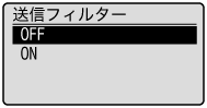]で<送信フィルター>または<受信フィルター>を選択して、[OK]を押します。