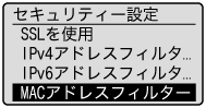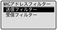 ]で<MACアドレスフィルター>を選択して、[OK]を押します。