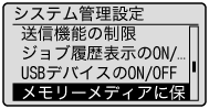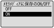 ]で<メモリーメディアに保存のON/OFF>を選択して、[OK]を押します。