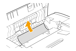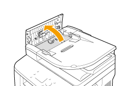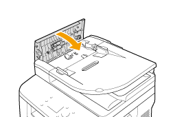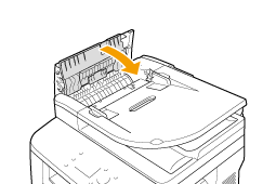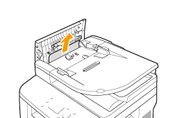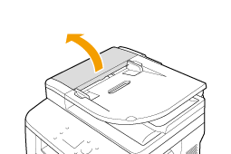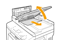 原稿給紙トレイを持ち上げて、原稿をゆっくり引っぱって取り除きます。
