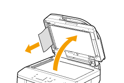 フィーダーを開けて、原稿をゆっくり引っぱって取り除きます。
