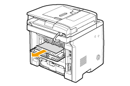 後ろカバー、両面ユニットにつまった用紙を取り除く