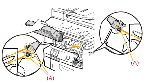定着していないトナーをこぼさないように、できるだけ水平に取り除いてください。