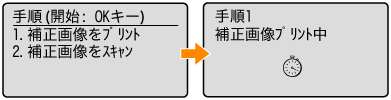 コピー画像補正は、画面に表示されている2つの手順(プリント→スキャン)で行います。