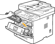 Remove the packing materials from the toner cartridge, and install the toner cartridge in the machine.