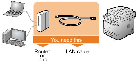 Required devicesCheck to make sure that there is a free port for connecting the machine or the computer you use to the router or hub.