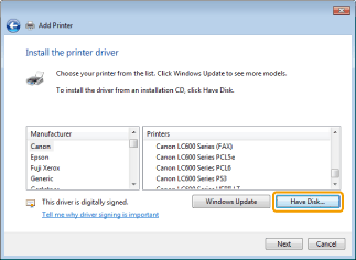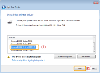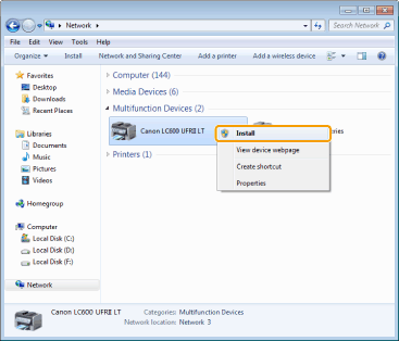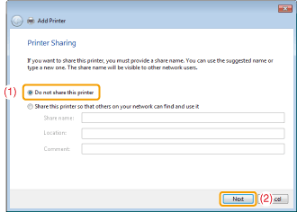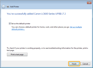 When [Set as the default printer] is displayed, specify whether to choose the machine as the default printer (Windows 7/Server 2008 R2).