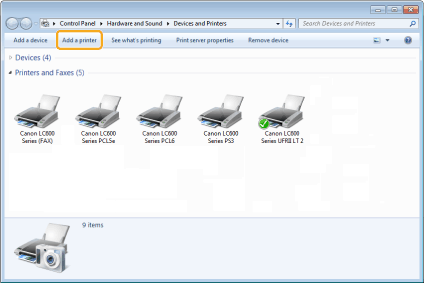 To set the machine as a shared printer, configure the related settings after you have performed the procedure provided in "Setting WSD."
