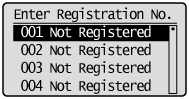 Select the number to be registered using [