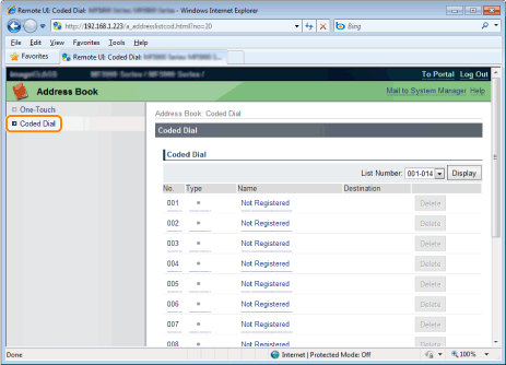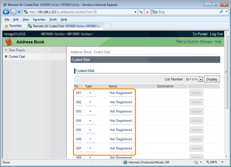 Click [Delete] of the destination which you want to delete.