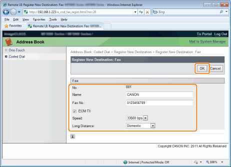 If you selected <Fax> in Step 4, press [OK] to specify <Set Details> if necessary.
