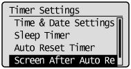 Select <Screen After Auto Reset> using [] or [] and press [OK].
