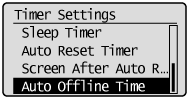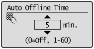 Once the timer has been set, the machine automatically returns to offline mode after it has been idle for a specified length of time.