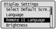Select <Language> or <Remote UI Language> using [] or [] and press [OK].