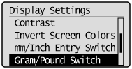 Select <Gram/Pound Switch> using [] or []and press [OK].